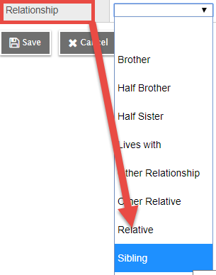 Relationship: Use the drop-down menu to select Sibling.